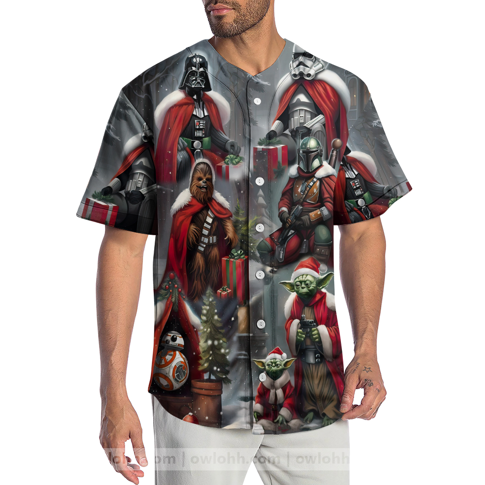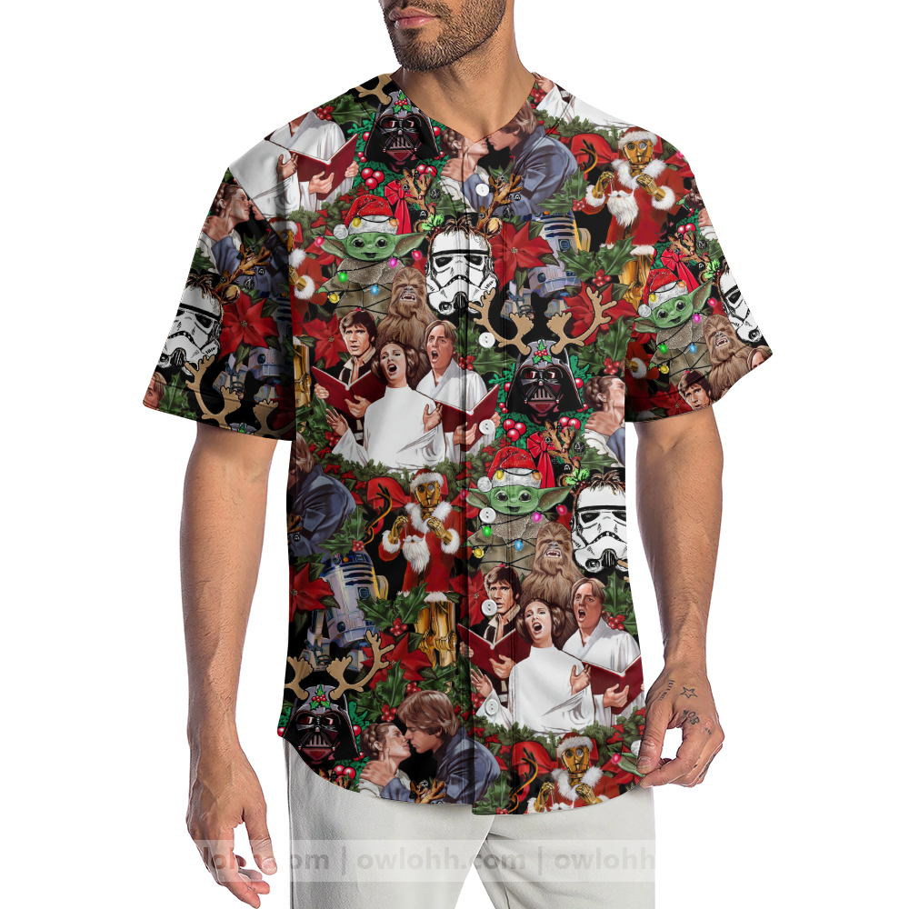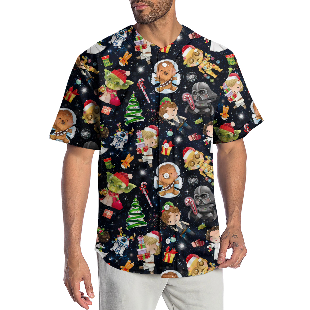 Christmas Star Wars With Santa Hat And Christmas Trees Darth Vader Yoda Chewbacca R2D2 Grogu Leia Luke – Baseball Jersey – Chic Loom