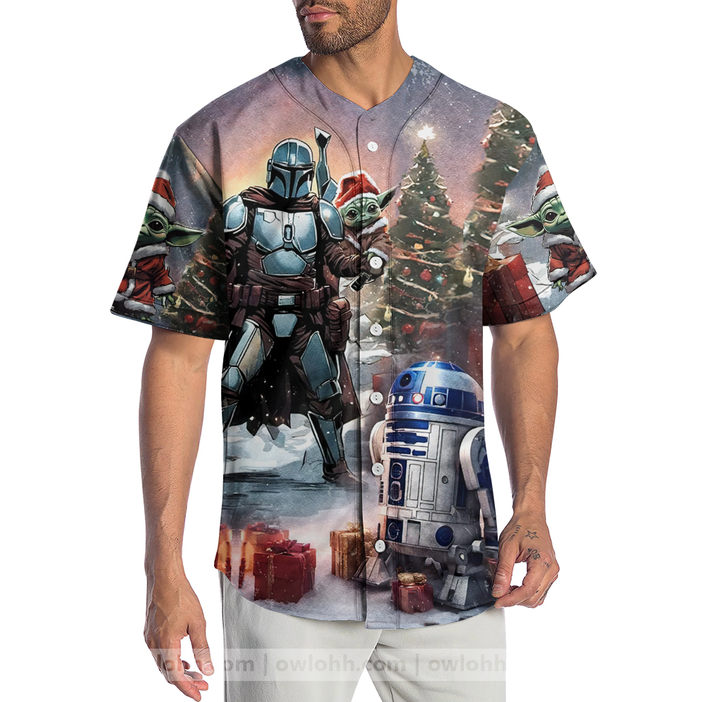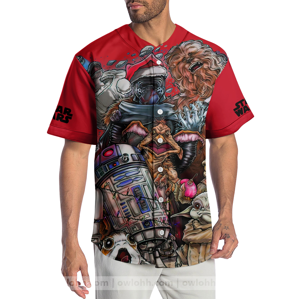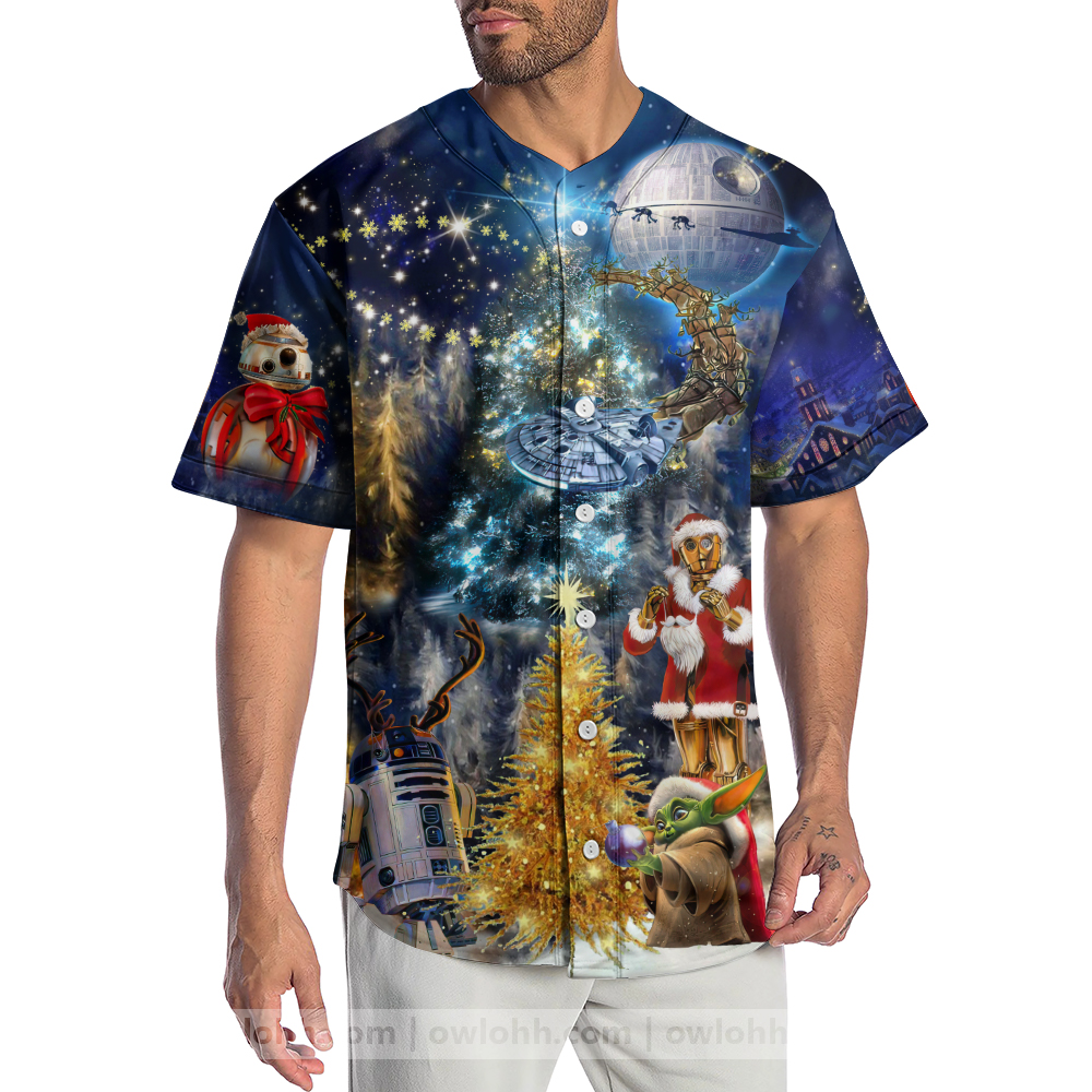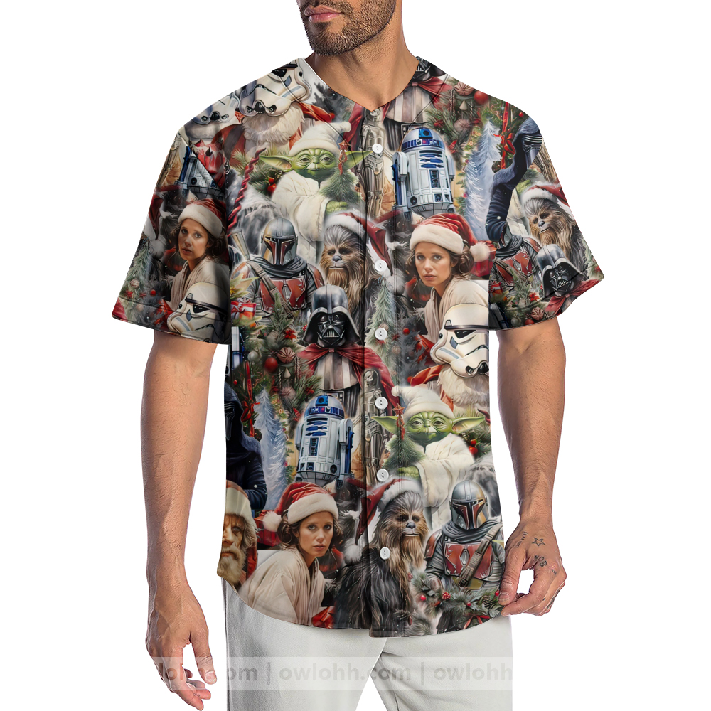 Christmas Star Wars With Santa Hat And Christmas Trees Darth Vader Yoda Chewbacca R2D2 Grogu Leia Luke – Baseball Jersey – Chic Loom