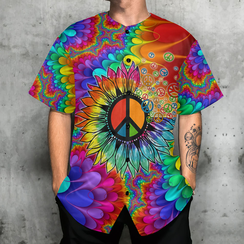 Hippie Peace Art With Sunflower – Baseball Jersey – Chic Loom