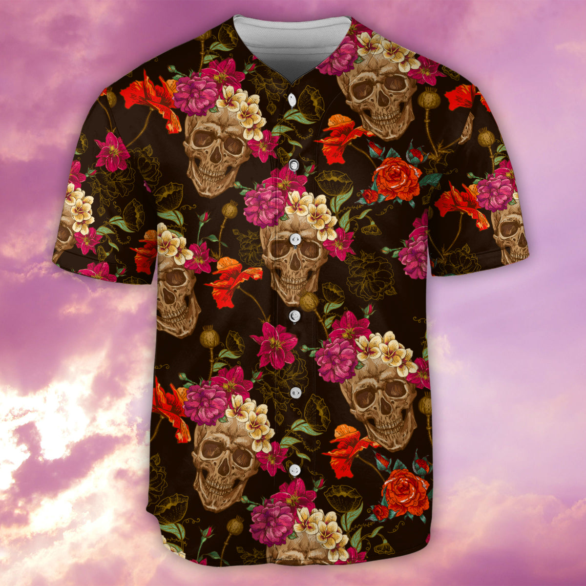 Skull Amazing Flowers Sugar – Baseball Jersey – Chic Loom