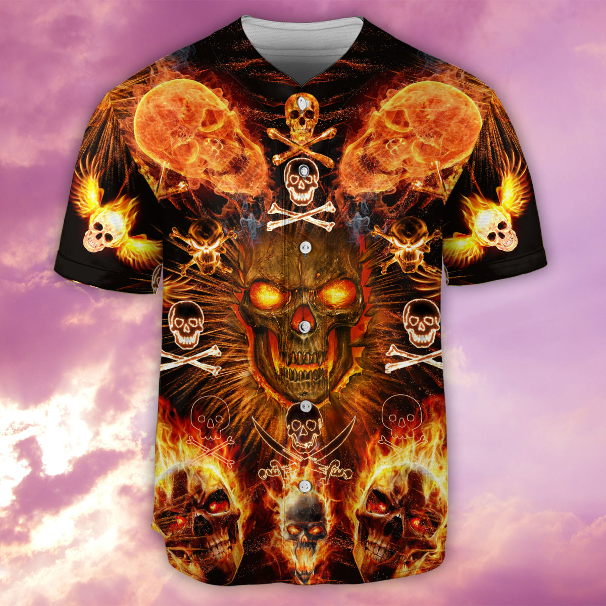 Skull Flaming Skull Style – Baseball Jersey – Chic Loom