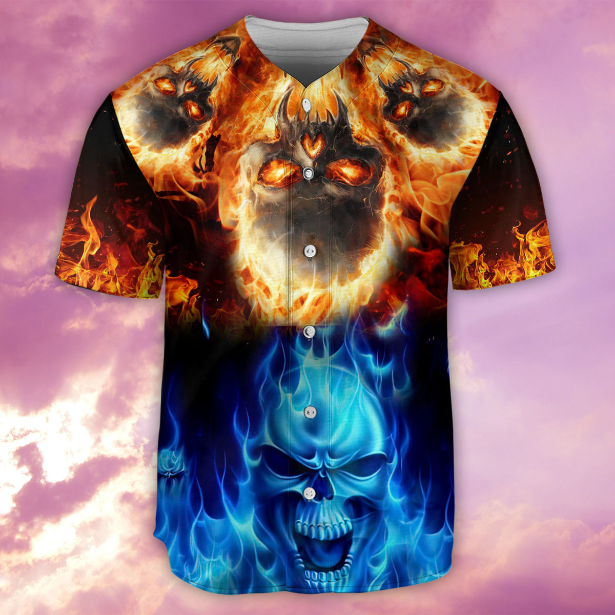 Skull Fire Burning Forever – Baseball Jersey – Chic Loom