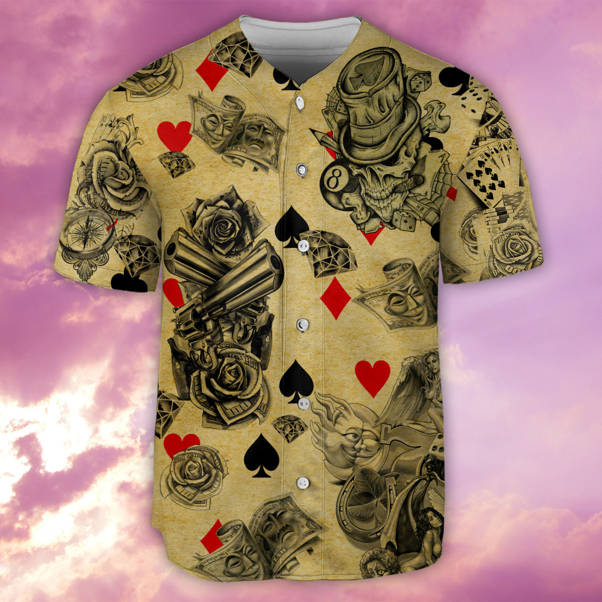 Skull Gambling Flowers Skull – Baseball Jersey – Chic Loom