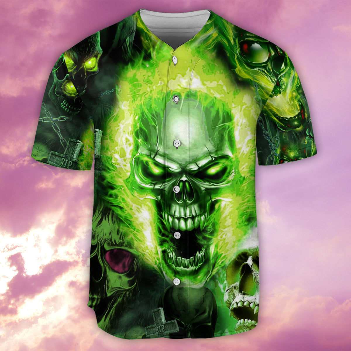 Skull Green Fear No Man – Baseball Jersey – Chic Loom
