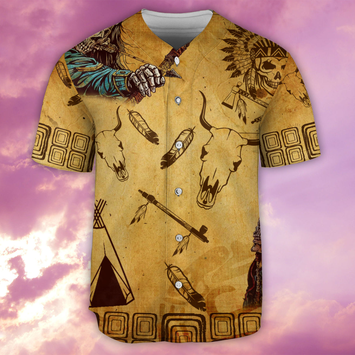Skull Native Skull War – Baseball Jersey – Chic Loom