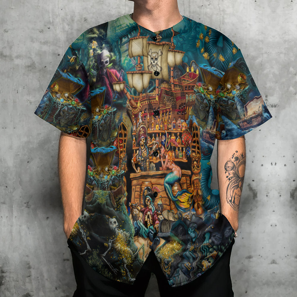 Skull Pirate Treasure Night On The Sea Style – Baseball Jersey – Chic Loom