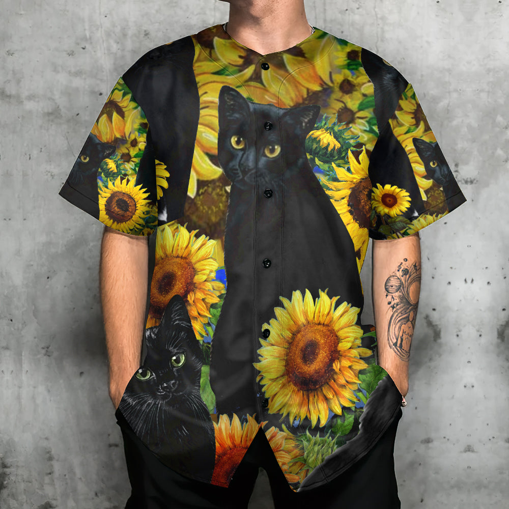 Black Cat Love Sunflower – Baseball Jersey – Chic Loom