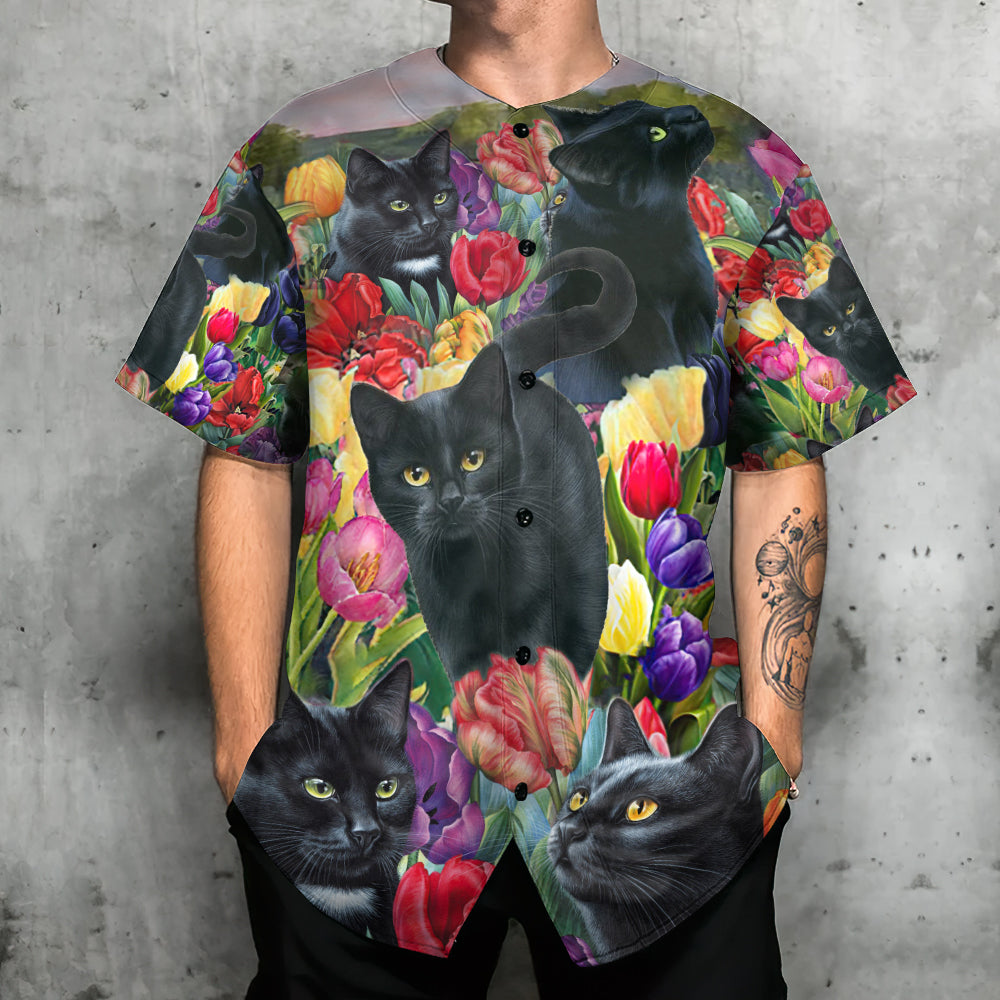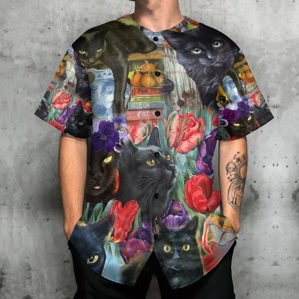 Black Cat Art With Flowers – Baseball Jersey – Chic Loom