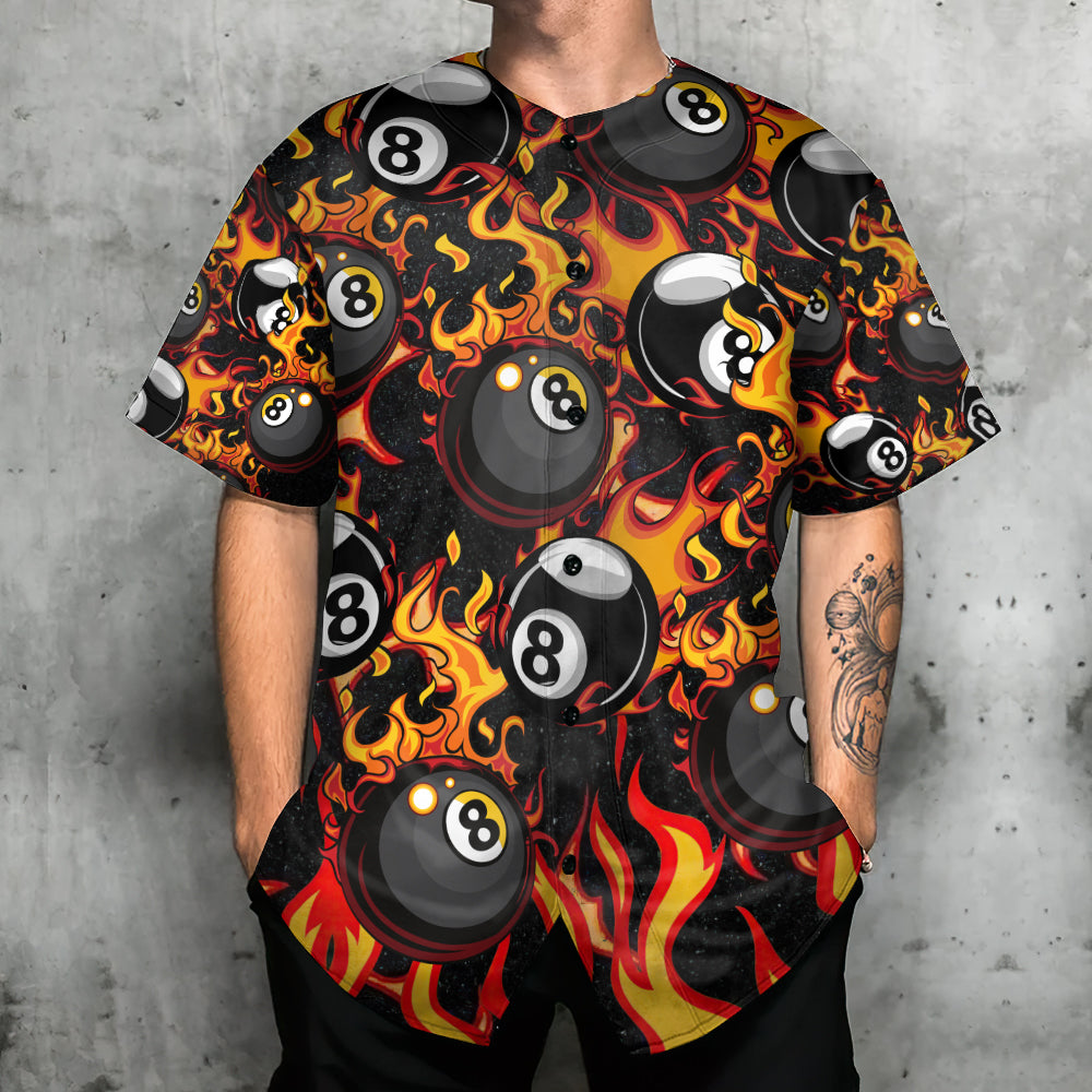 Billiard Eight Ball Burning With Fire Flames – Baseball Jersey – Chic Loom