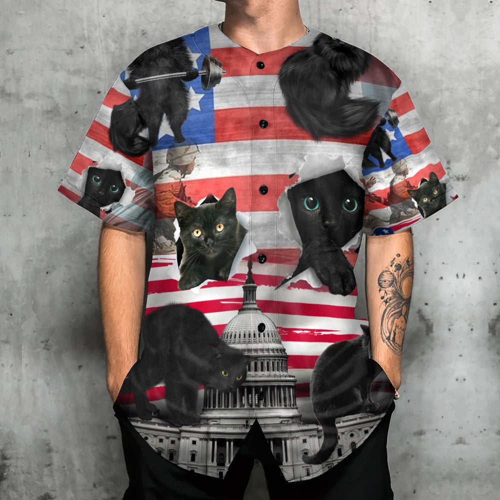 Black Cat Independence Day America – Baseball Jersey – Chic Loom