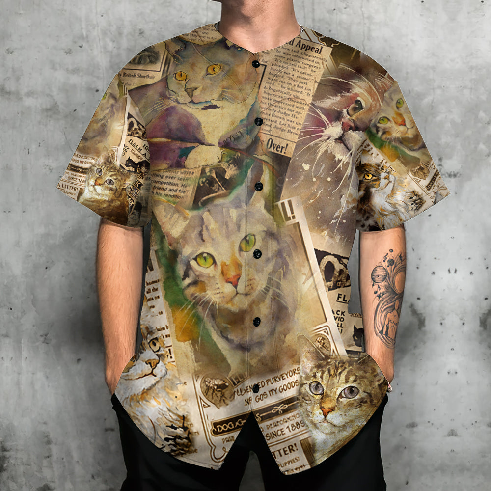Cat In The Vintage Newspaper – Baseball Jersey – Chic Loom