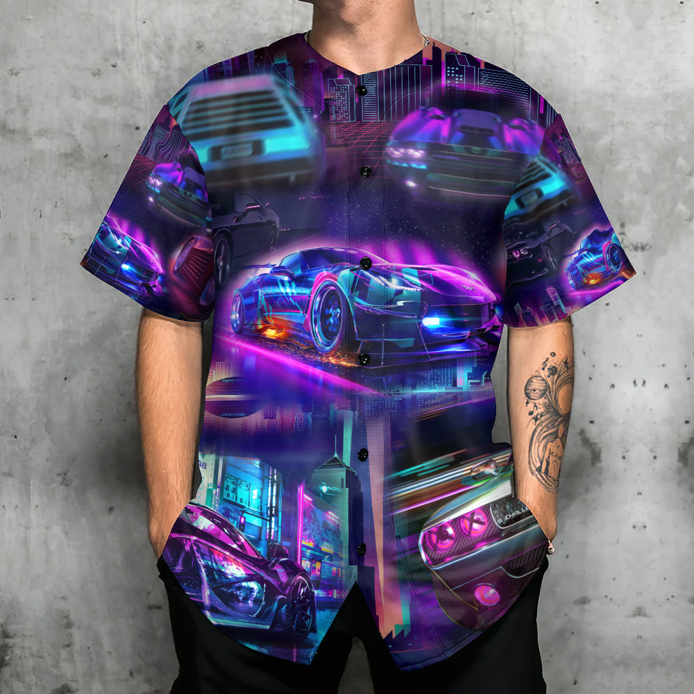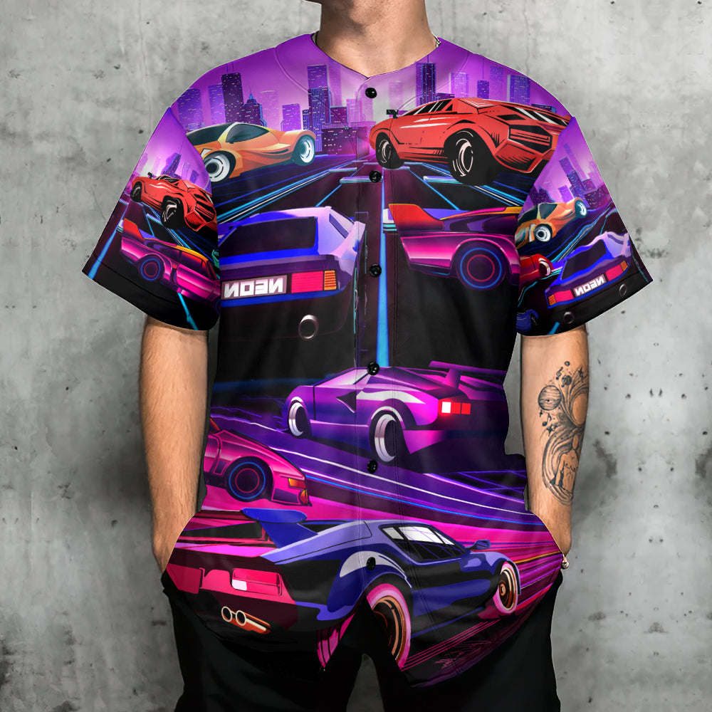 Car Love Racing Car In The Neon City Style – Baseball Jersey – Chic Loom