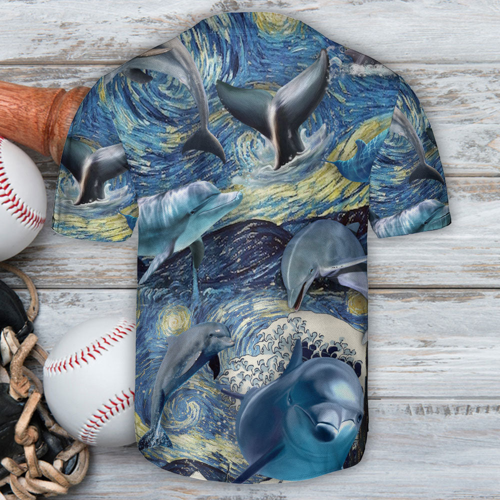 Dolphin And The Moon Art Starry Night – Baseball Jersey