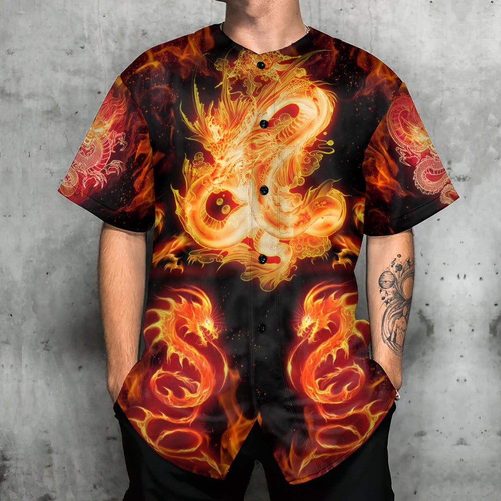 Dragon And Fireball Madness – Baseball Jersey – Chic Loom