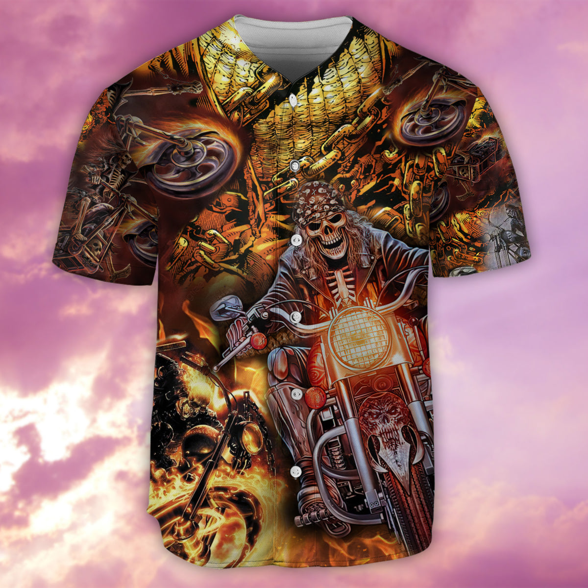 Motorcycle Skull Racing Fast Fire – Baseball Jersey – Chic Loom
