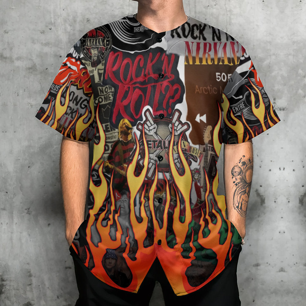 Music Rock Music Red Flame Chill – Baseball Jersey – Chic Loom