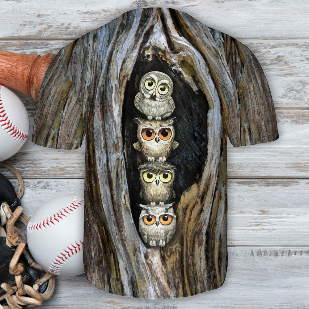 Owl Family Funny Wood Art – Baseball Jersey – Chic Loom