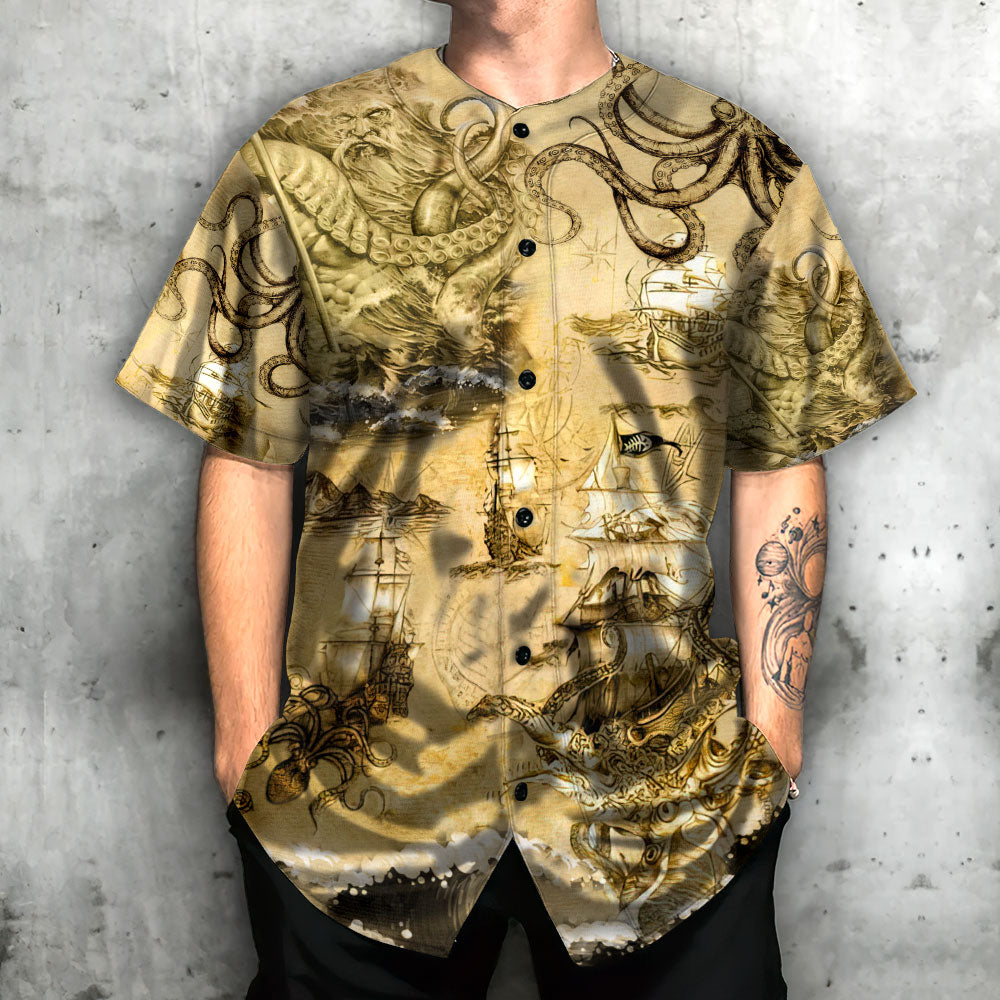 Octopus Sea Map Vintage Art – Baseball Jersey – Chic Loom