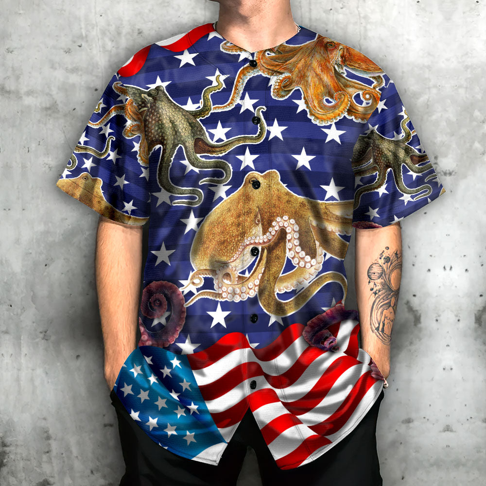 Octopus USA FLag Art – Baseball Jersey – Chic Loom