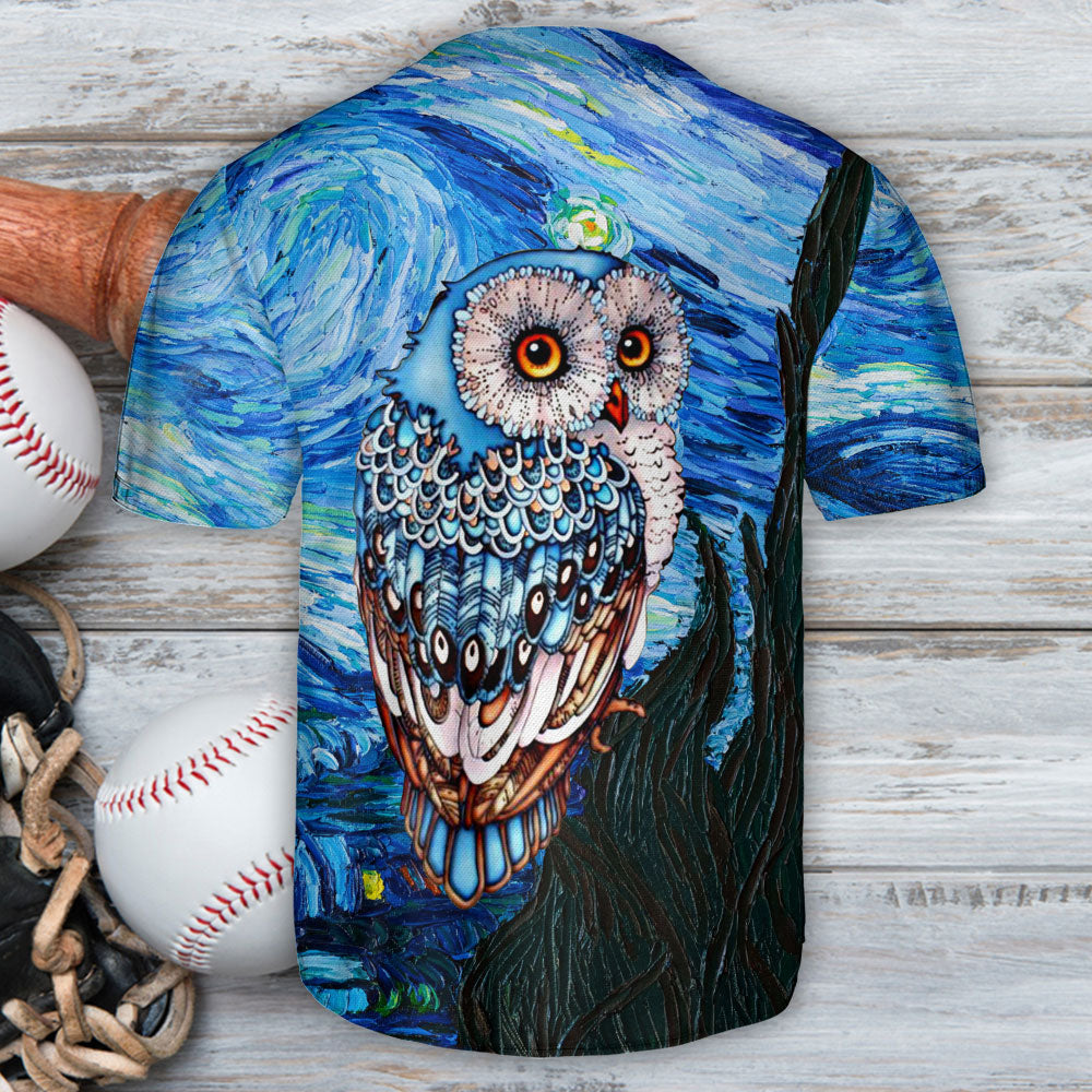 Owl Night Art Starry Night Glass Art – Baseball Jersey – Chic Loom