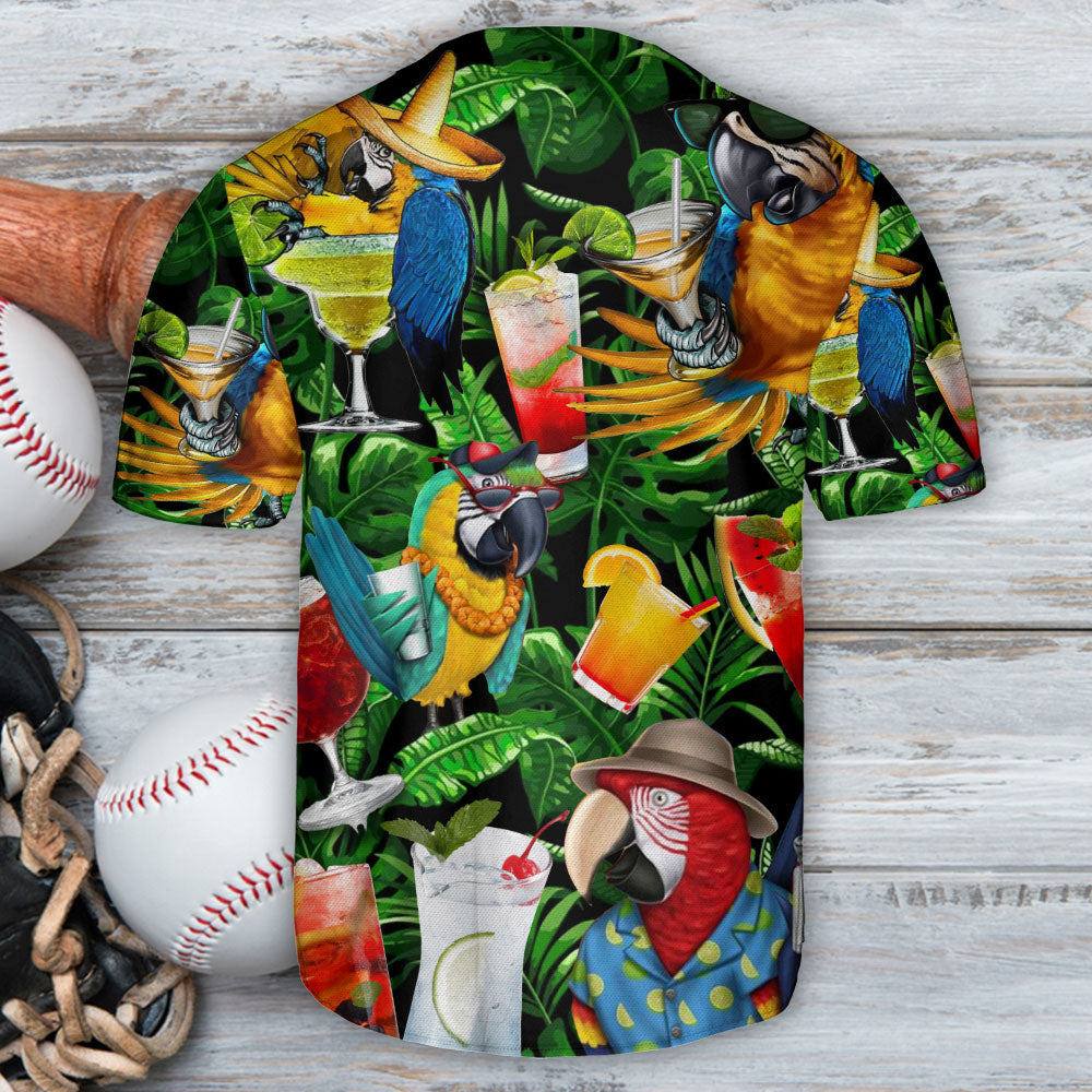 Parrot With Cocktails Tropical Art – Baseball Jersey – Chic Loom