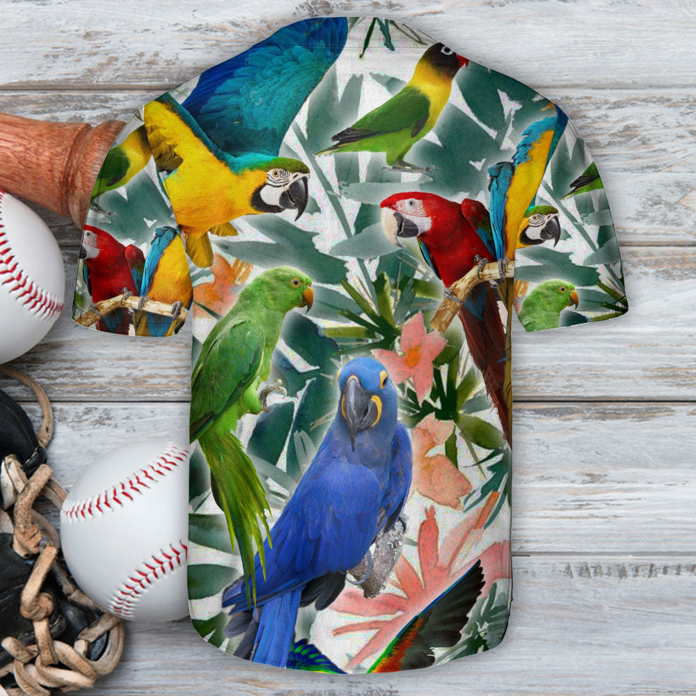 Parrot Tropical Flowes Art – Baseball Jersey – Chic Loom