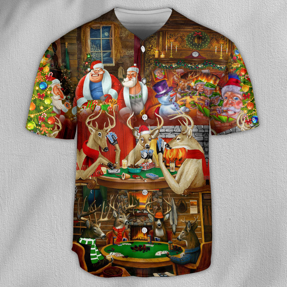 Poker Gambling Santa And Friends Play Poker – Baseball Jersey – Chic Loom