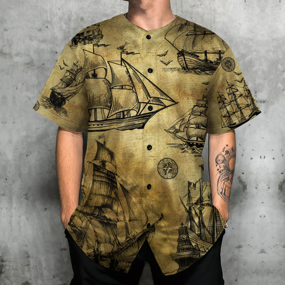 Sailing Ship Old Vintage Anchor Sea Life – Baseball Jersey – Chic Loom