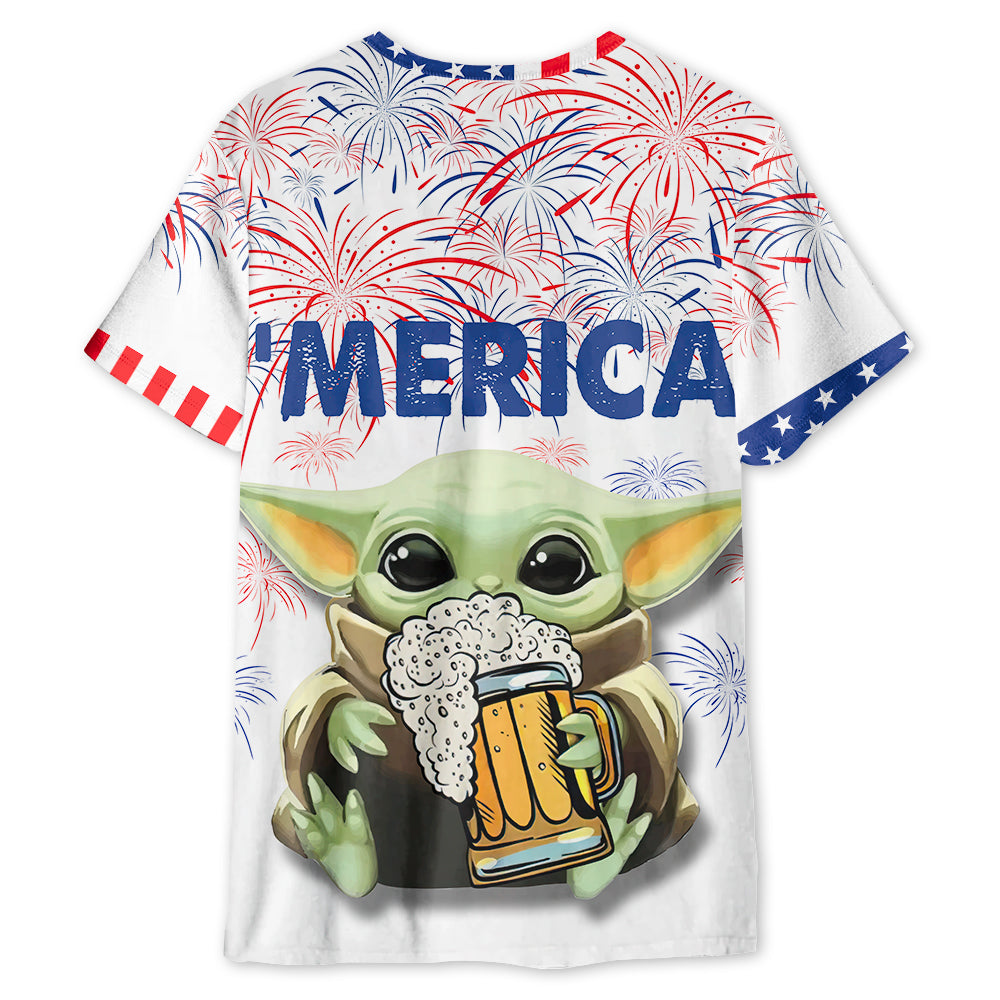 SW Baby Yoda With Beer – Unisex 3D T-shirt – Chic Loom