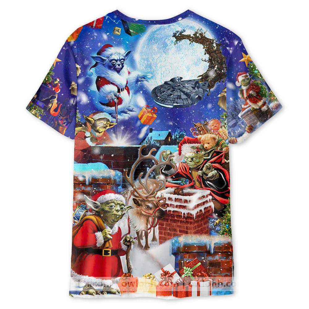 Christmas Star Wars Christmas Up On Rooftop Santa’s Busiest Night With Spaceship – Unisex 3D T-shirt – Chic Loom