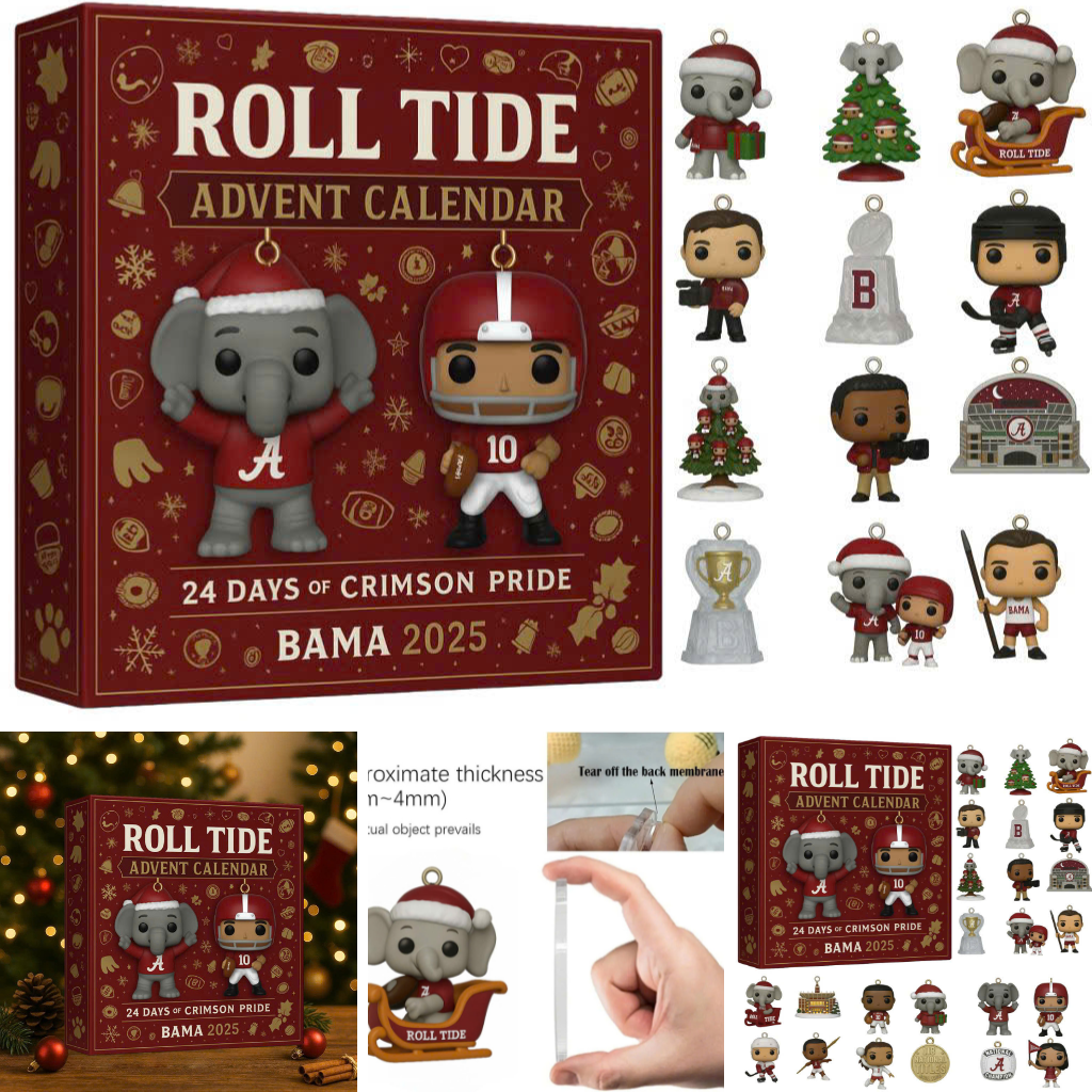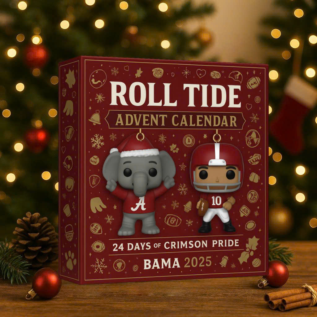 This Christmas season will be more special than ever for Alabama fans when you own the Alabama Crimson Tide 2025 Advent Calendar. This is not only a gift box counting down to Christmas, but also a 24-day journey full of joy, surprises and pride with the legendary football team. The advent calendar has elegant styling and utilizes the signature red of Crimson Tide, the bold words “Roll Tide”, and the BAMA 2025 logo on the box lid give a formal but festive feeling from the first view. Each day you open a small box and receive a unique mini gift: mascot Big Al in several adorable renditions like Santa Claus, an elephant carrying gifts, a mascot cheering; player number 10 in an energized outfit competing; a stadium model, a Christmas tree; championship trophies and medals celebrating historic moments; and a series of icons representing the tradition and glory of the Alabama Crimson Tide. Each Funko Pop mini figure is carefully designed, compact, and highly collectible. The hook gives you the option to also use them all together to decorate your Christmas tree, your desk, a display shelf, or work corner, creating a small but vibrant Crimson Pride space. Each unique mini figure, character, and icon is not only a cute gift, but also a meaningful reminder of the history, glory, and nostalgia of “Roll Tide” fans.