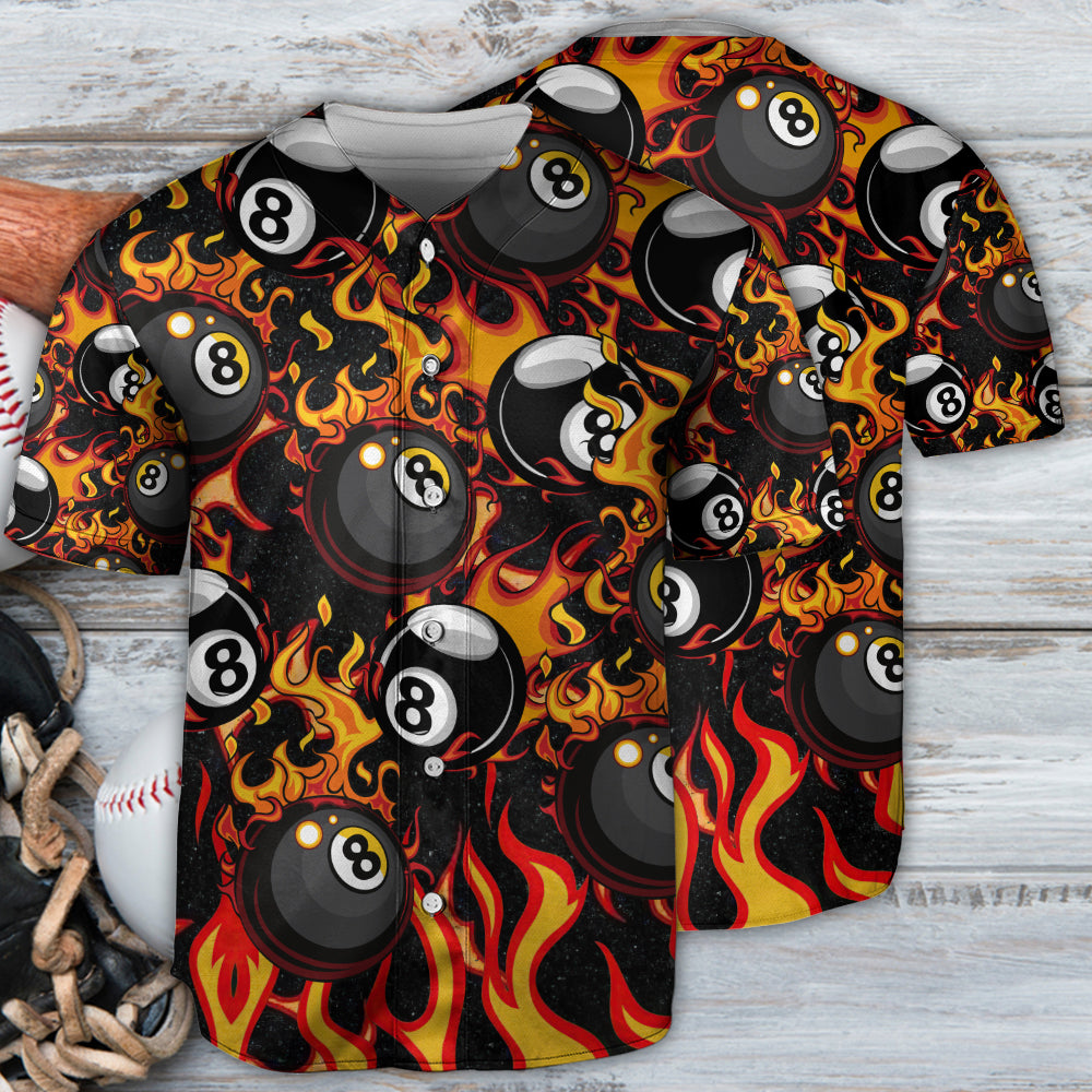 Billiard Eight Ball Burning With Fire Flames – Baseball Jersey – Chic Loom