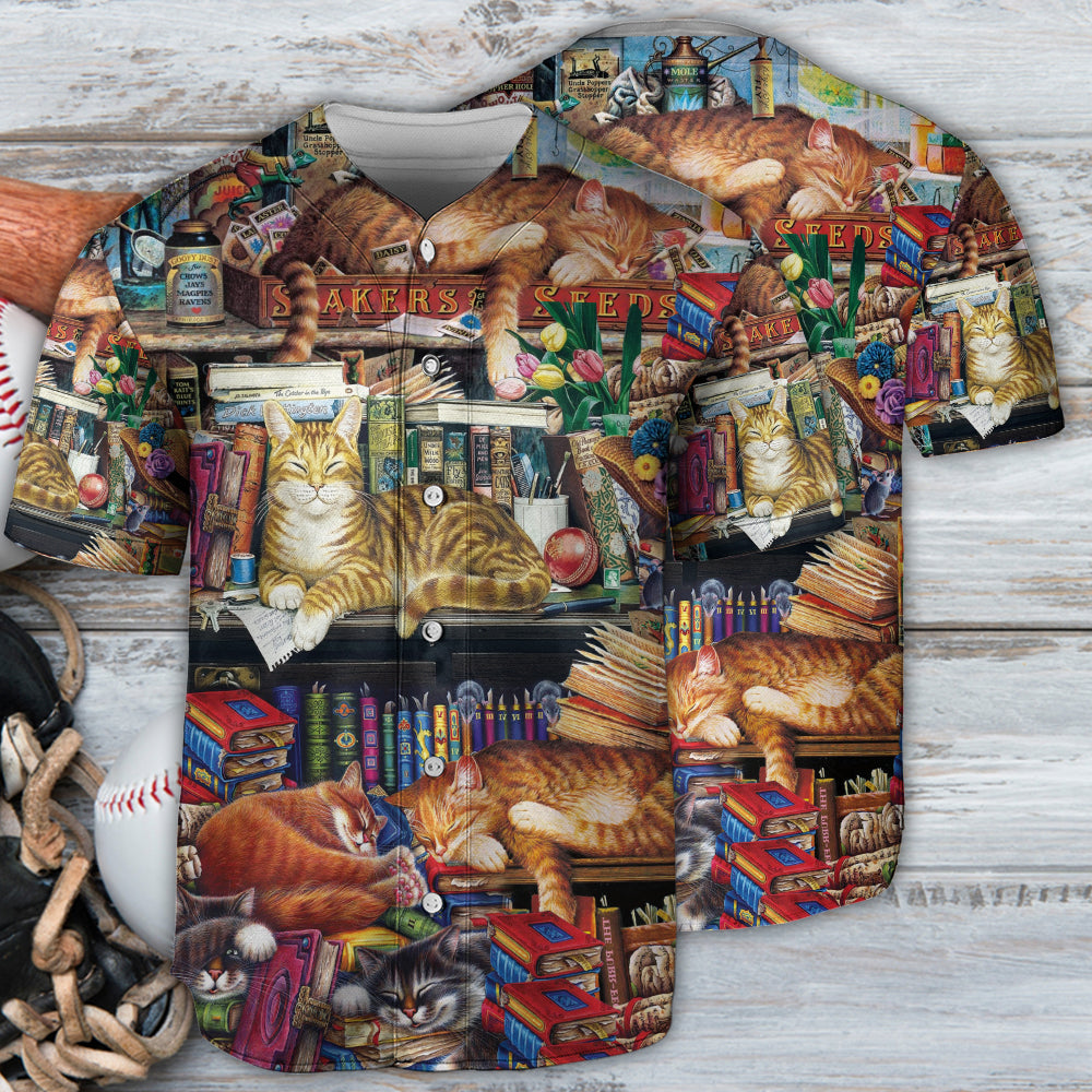 Book Happiness Is A Good Book And A Cat Sleeping – Baseball Jersey – Chic Loom