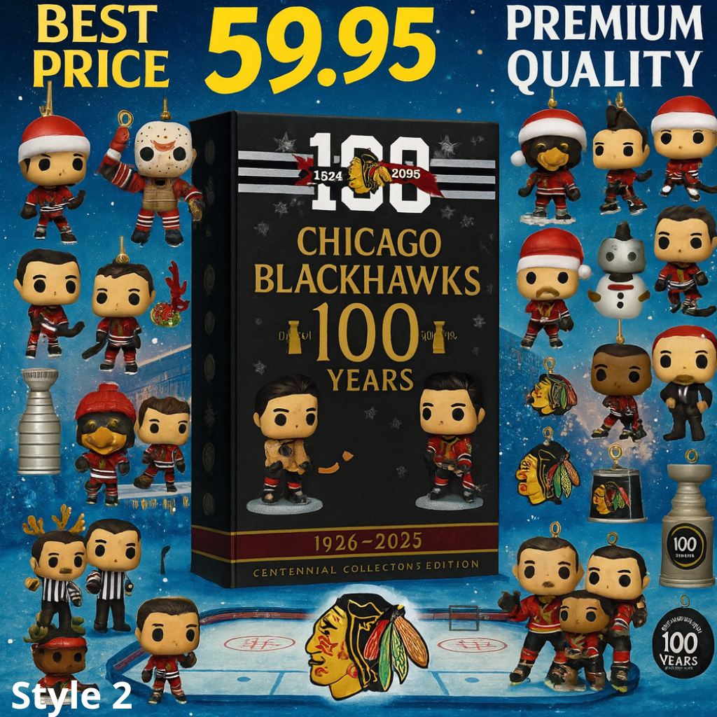 The Chicago Blackhawks’ 100th Anniversary Advent Calendar 2025 edition is a special edition for the commemorative 100 years of the legendary hockey team (1926-2026). It is a premium collectible Christmas countdown calendar featuring 24 days of surprises, all inspired by memorable moments in the Blackhawks journey. In Style 1 – Centennial Collector’s Edition, the gift box is deluxe black with red embellishments, with legends of the team illustrated. There are 24 Funko Pop! figures and fancy accessories, with players wearing their game uniforms across the decades, the goalies with old school masks, mascot Tommy Hawk, the Stanley Cup, the 100th anniversary logo, and many other creative touches with numerous pieces in this collectible piece. In Style 2 – A Century on Ice, it has a festive feel, with a white gift box decorated with feather and drum patterns. The collection includes players, coaches, referees, mascots and Blackhawks-themed Christmas decorations, Christmas trees, helmets, red feathers, cheerleaders, and even iconic scenes from games. Every detail is beautifully crafted in premium quality, making it great for display and a perfect gift for a loyal fan. The Chicago Blackhawks 100th Anniversary Advent Calendar 2025 is not just a calendar for Christmas countdown, it is a celebration of 100 years of Blackhawks’ glory on frozen ice.