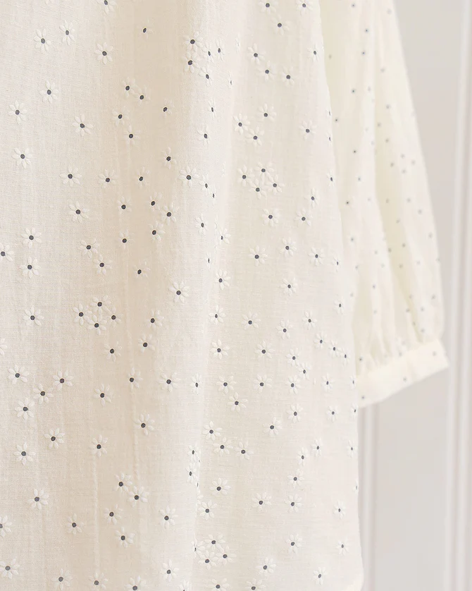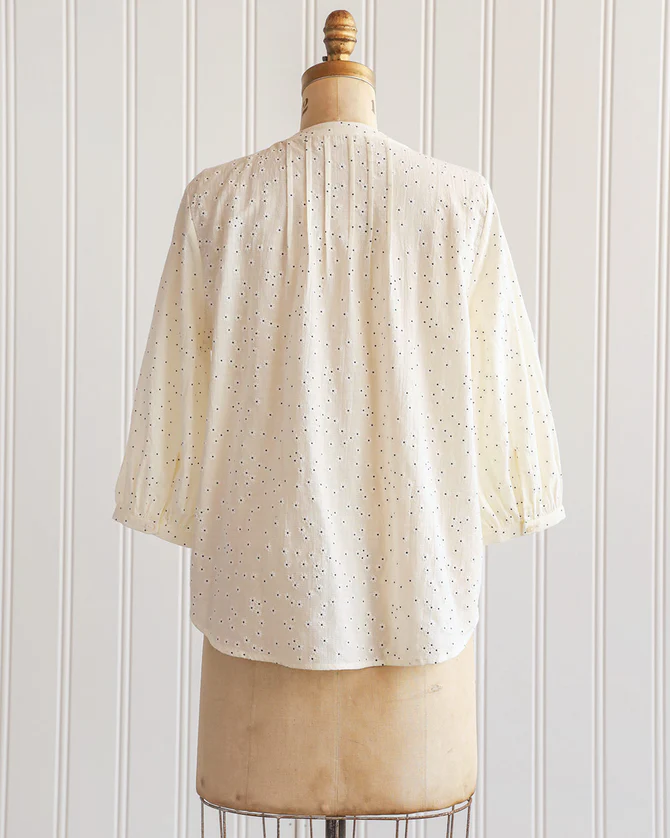 Romantic timeless vintage inspired cream printed pintuck blouse