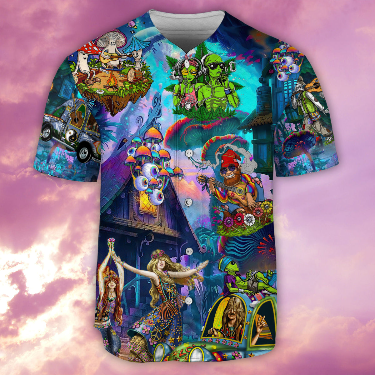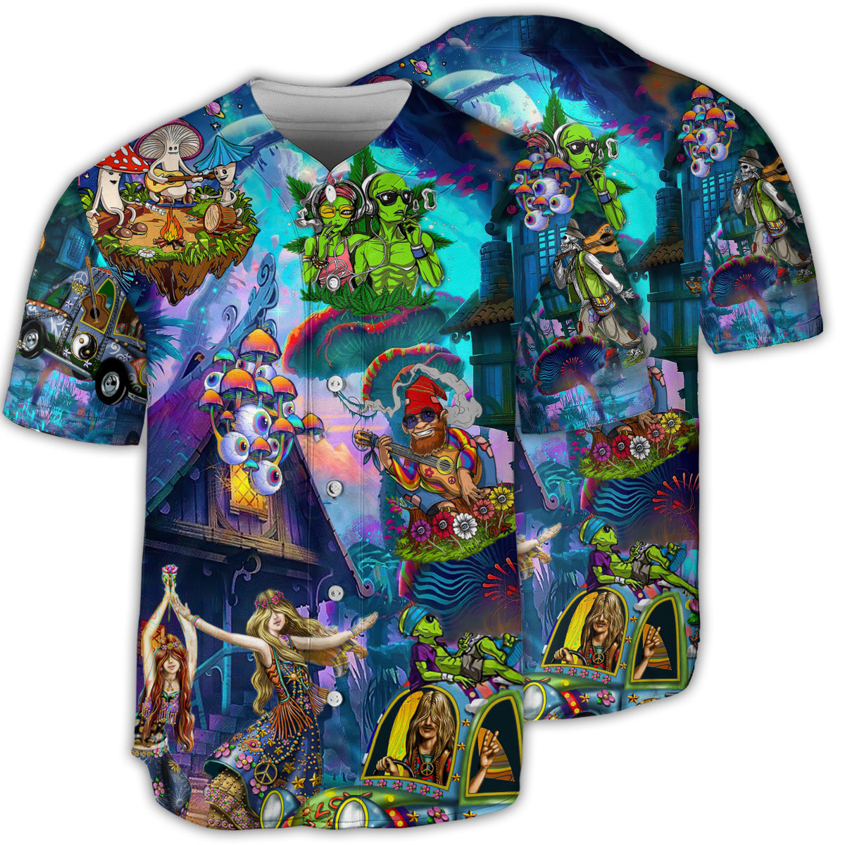Hippie Alien Skull Mushroom Peace Life Color – Baseball Jersey – Chic Loom