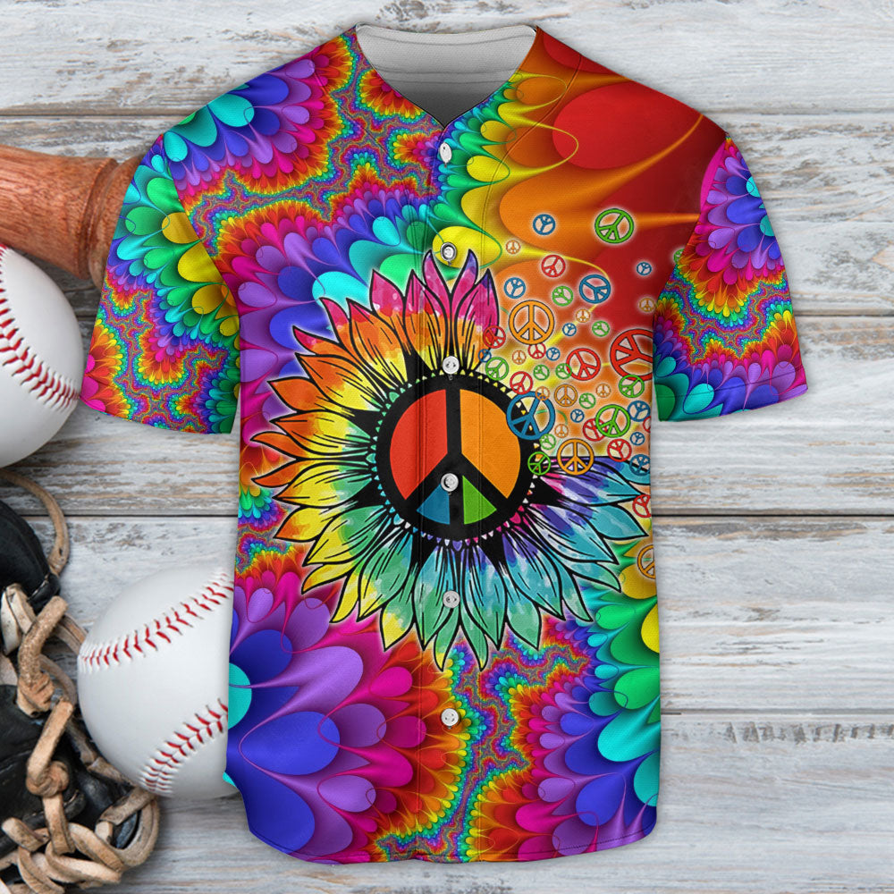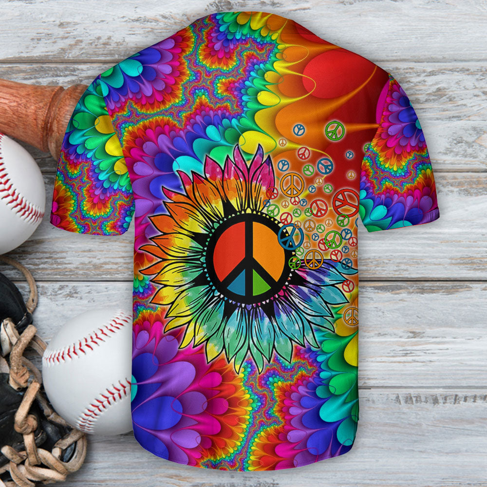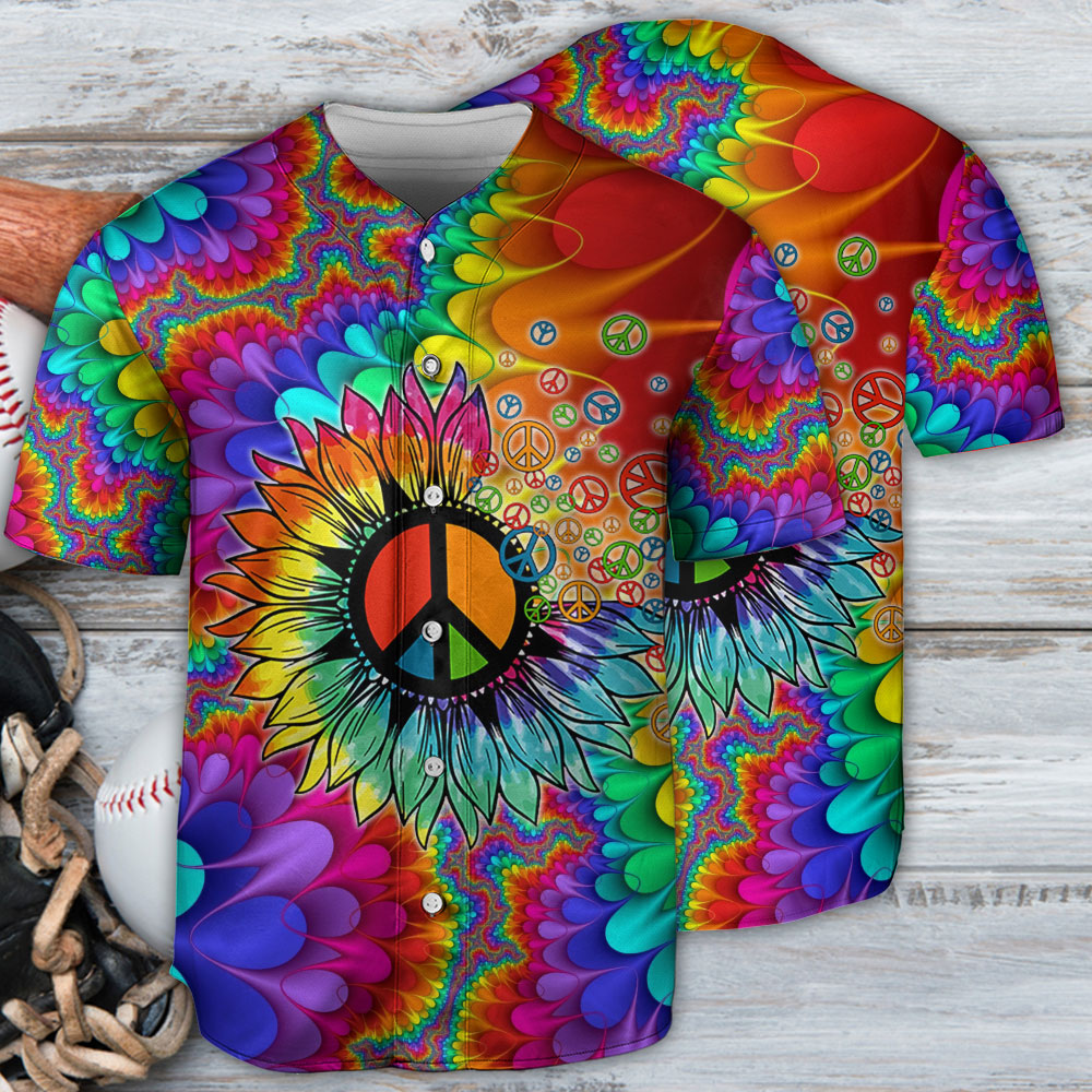 Hippie Peace Art With Sunflower – Baseball Jersey – Chic Loom