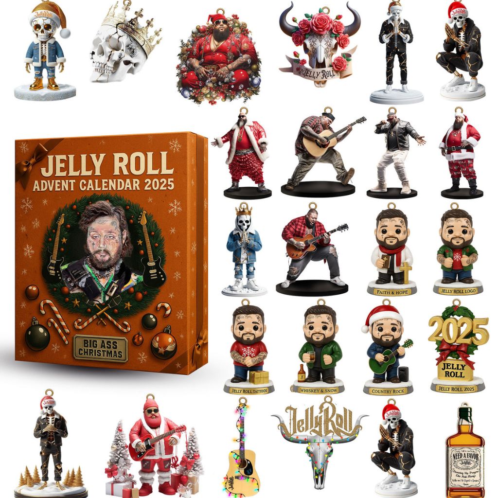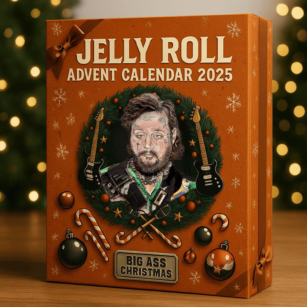 The calendar box is beautifully styled to reflect the Jelly Roll legacy and holiday spirit: