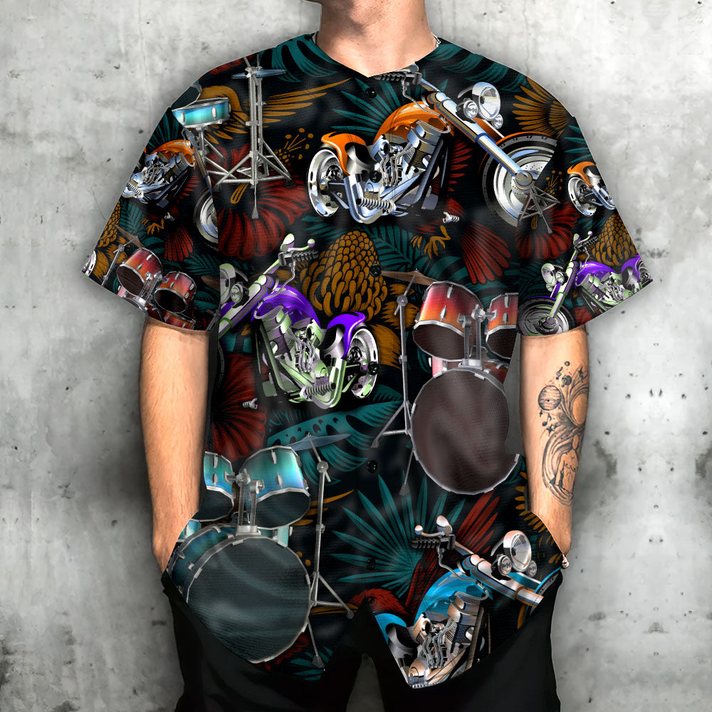Motorcycle And Drum Tropical Vibe – Baseball Jersey – Chic Loom