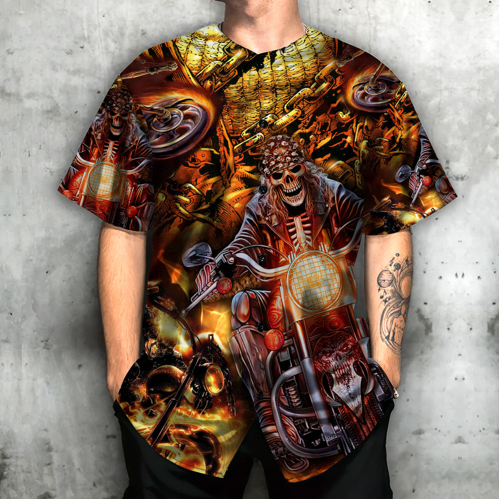 Motorcycle Skull Racing With Flame Art – Baseball Jersey – Chic Loom