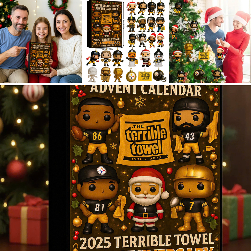 2025 marks the 50th Anniversary of the iconic Terrible Towel (1975–2025) and what better way to honor this legendary milestone than with a festive Advent Calendar? The Pittsburgh Steelers 50th Anniversary Advent Calendar 2025 is more than just holiday décor – it’s a countdown filled with history, tradition, and the excitement of Steelers football.