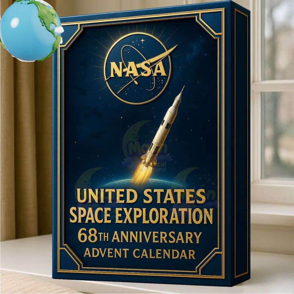 The calendar box is beautifully styled to reflect the RELEASED NASA Space Exploration legacy and holiday spirit: