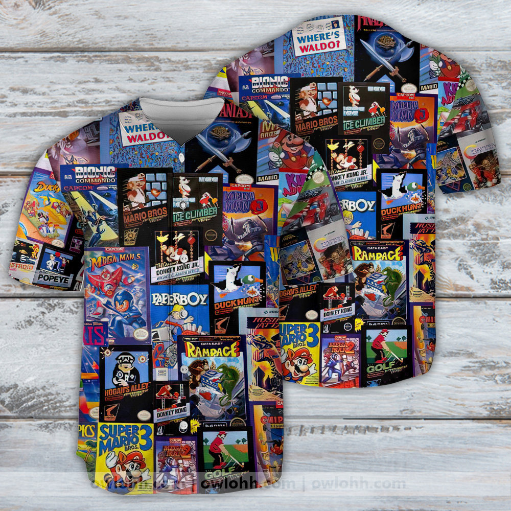 Retro Video Game Cogllage – Baseball Jersey – Chic Loom
