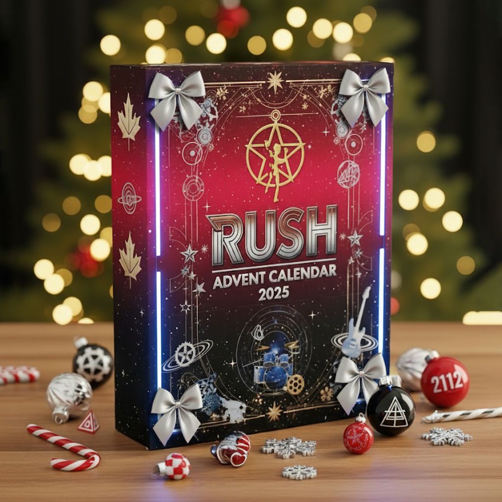 The calendar box is beautifully styled to reflect the Rush legacy and holiday spirit: