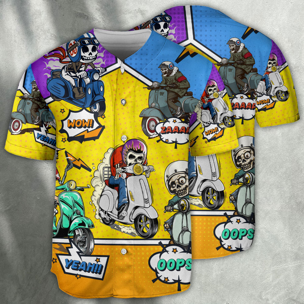 Scooter Skeleton Drive Scooter Pop Art Style – Baseball Jersey