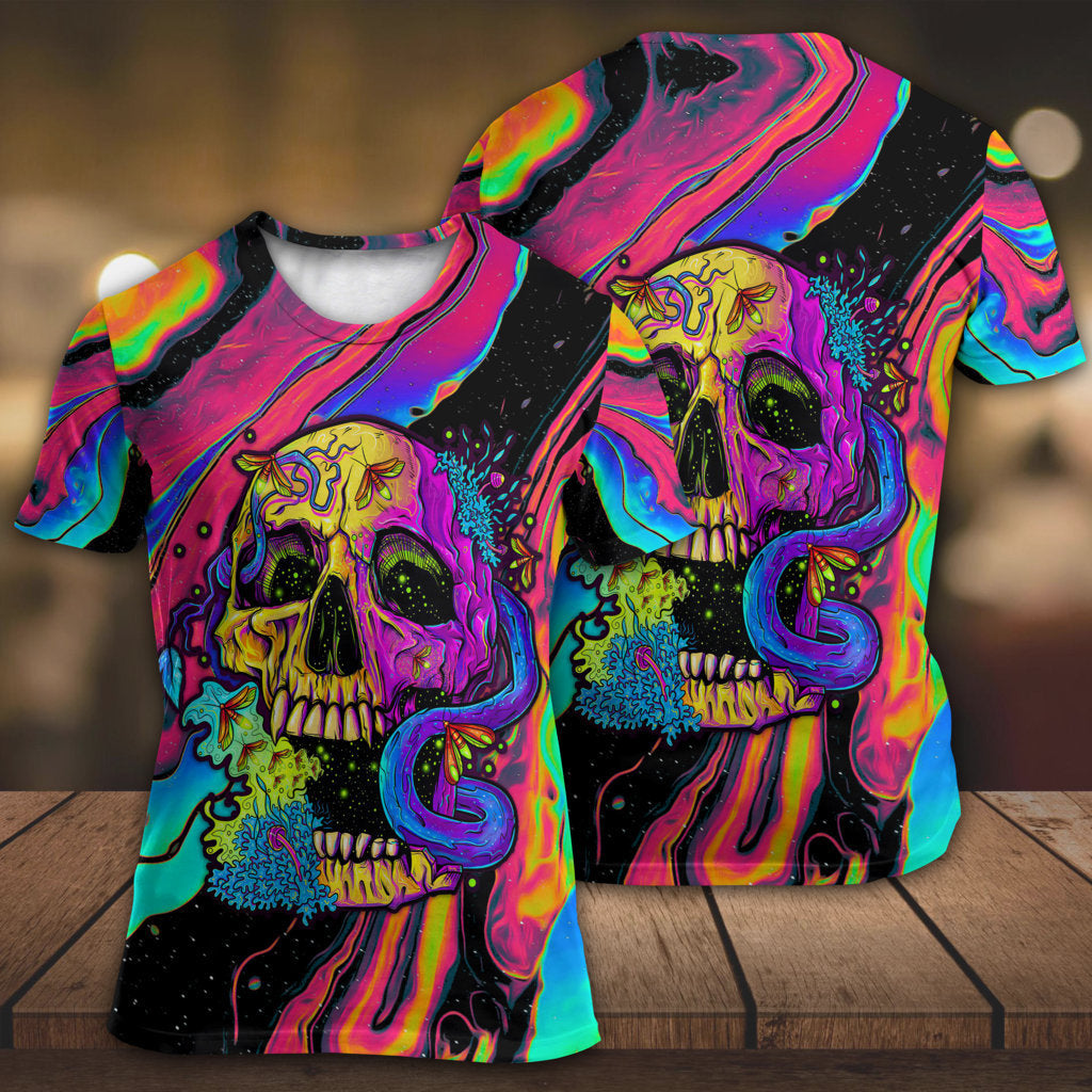 Skull And moth Night Butterfly Neon Style – 3D T-shirt – Chic Loom