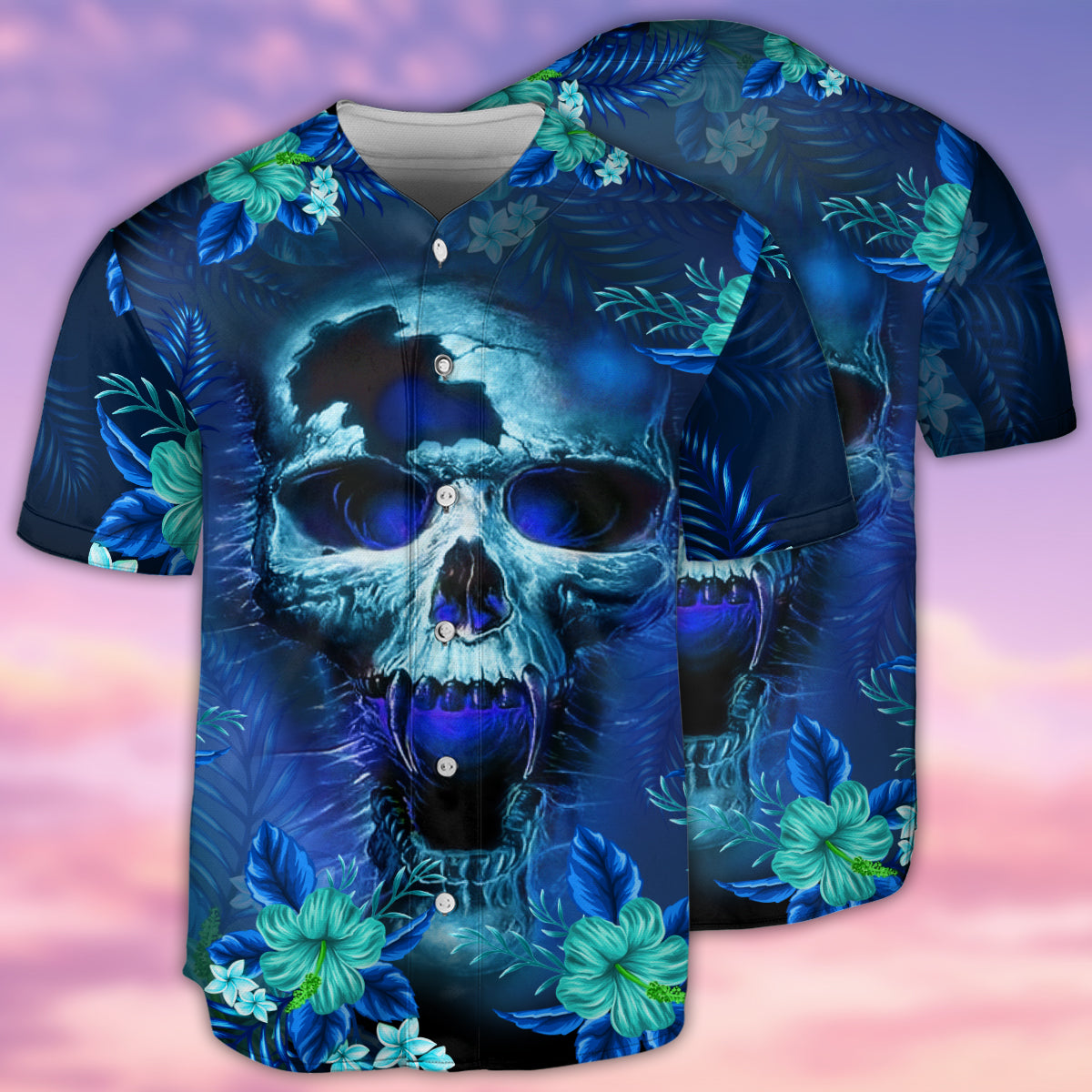 Skull Blue Hello Summer Style – Baseball Jersey – Chic Loom
