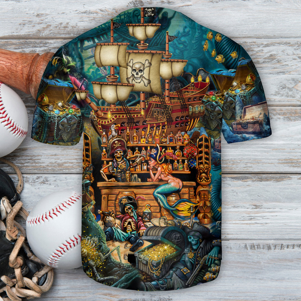 Skull Pirate Treasure Night On The Sea Style – Baseball Jersey – Chic Loom