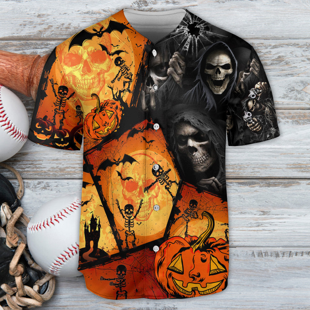 Skull Pumpkin Scary Halloween – Baseball Jersey – Chic Loom