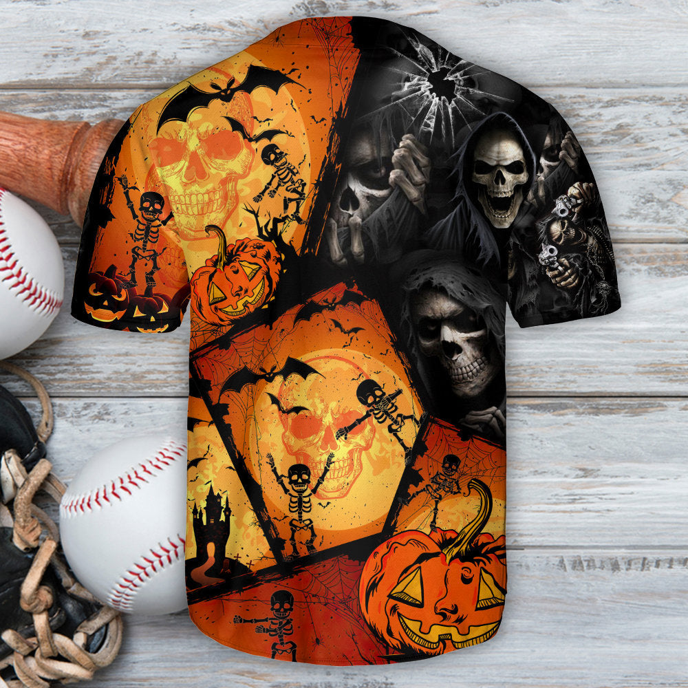 Skull Pumpkin Scary Halloween – Baseball Jersey – Chic Loom